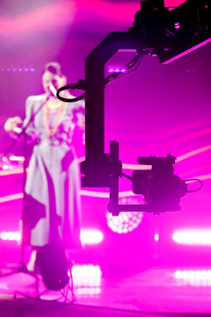silhouette cameraman in the concert area and steadicam and professional camera