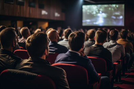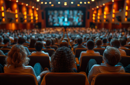 A vibrant cinema filled with an attentive audience captivated by a lively presentation, showcasing the importance of interaction and engagement in modern events.