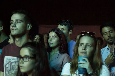 FARO, PORTUGAL: 5th SEPTEMBER, 2019 - Audience watch music artist on Festival F, a big festival on the city of Faro, Portugal.