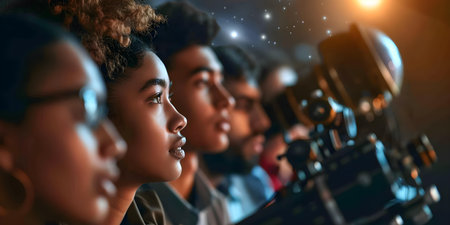 Diverse Group Of Astronomers. Concept Astrophotography, International Astronomy Day, Space Exploration, Cultural Exchange, Astronomical Discoveries