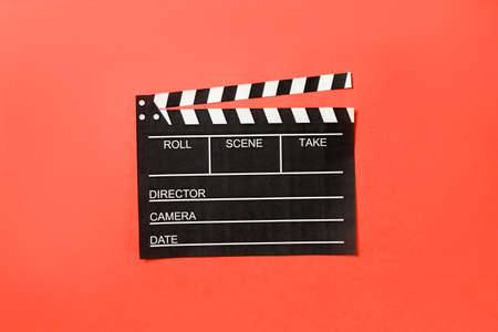 clapperboard on red background with space. High quality and resolution beautiful photo concept