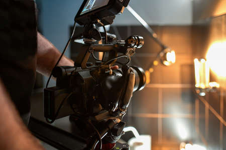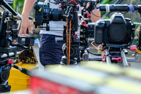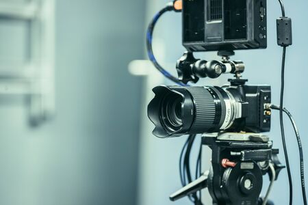 Detail image of Cinema Camera on Film Set, Behind the scenes background, film crew production
