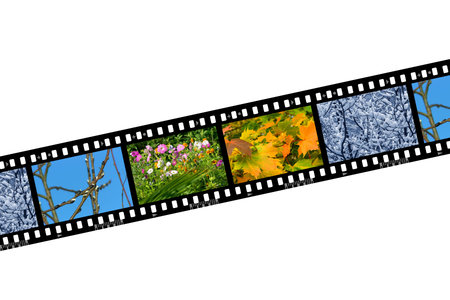 Spring, summer, autumn and winter, nature seasons in film frames, isolated on white background