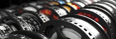 Films collection. Movie video reels background. 3d