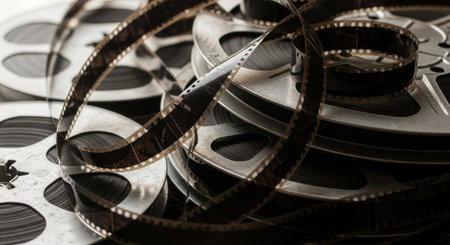 8mm film for cinema. film and reels. Old cinema film.