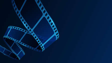 Realistic 3d film strips in perspective. Modern Cinema Background. Template poster for cinema festival. Movie design film strip for advertisement, poster, brochure, banner, flyer. isometric style