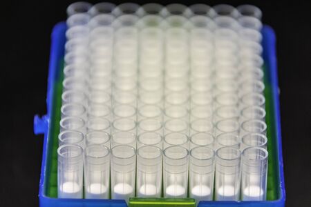 Batch of laboratory plastic test tubes at lab.