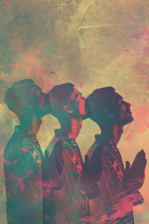 Artistic double exposure light leaks creating a vintage and nostalgic atmosphere
