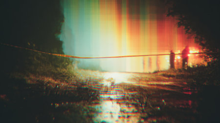 Glitch effect creating digital distortion with chaotic noise in a dark setting