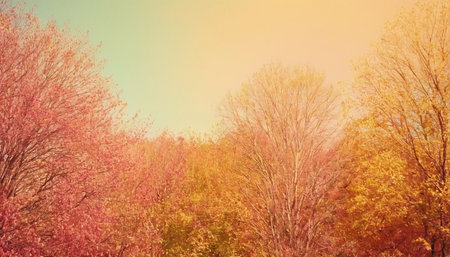 Trees reaching for sky. Park in autumn scenery. Nature outdoor vegetation concept.