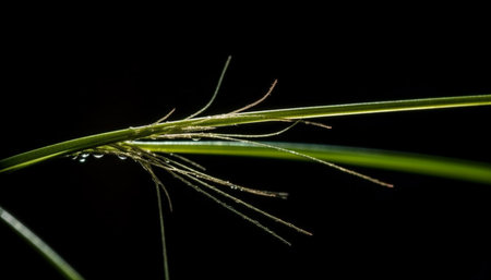 Vibrant green blade of grass with dew drop on black background generated by artificial intelligence