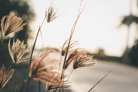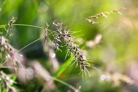 vintage grass flower with green light bokeh, nature background