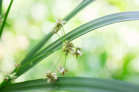 Green flowers of the Cyperaceae background green leaves.