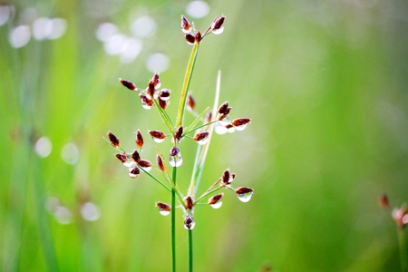 Drops of dew on a green grass