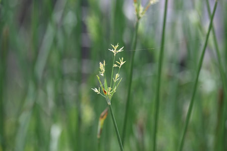 bush of green fresh sedge with brown flovers