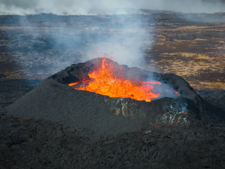 Close-up of volcano, dramatic volcanic eruption in Reykjanes peninsula Iceland