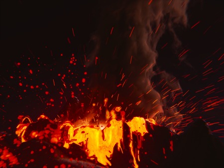 Volcanic eruption. Burning lava and ash from volcano crater.