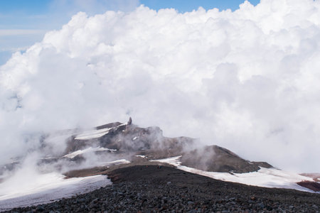 Crater of erupting volcano Tolbachik, Kamchatka Peninsula, Russia