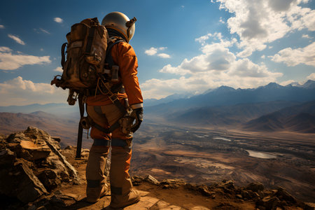 Astronaut exploring a new planet. Searching for a new home for humanity. Concept about science and nature