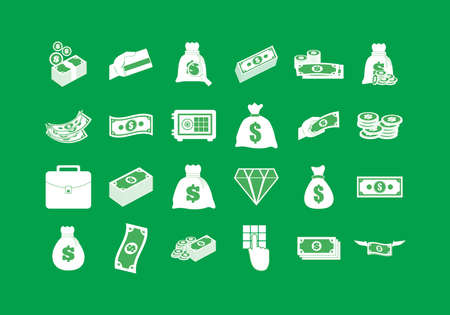 Icon set of money financial item banking commerce market payment buy currency accounting and invest theme Vector illustration
