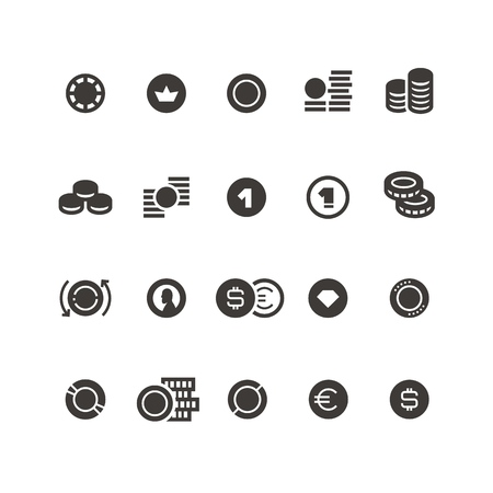 Coin signs. Stacked coins, dollar, money, fund, donate and cash vector icons isolated. Dollar money currency, investment finance illustration