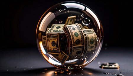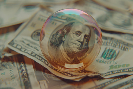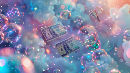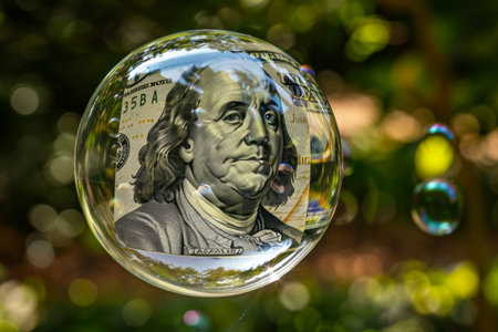 A giant soap bubble filled with dollar bills symbolizing wealth and financial aspirations