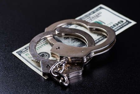 Police handcuffs. Financial crime, dirty money and corruption concept.Crime, Bribing, Fraud