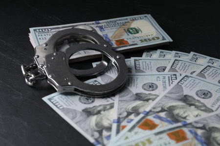 Handcuffs on Dollar Bills: Symbol of Financial Crime and Justice