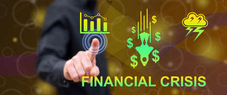 Man touching a financial crisis concept on a touch screen with his finger