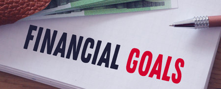Achieving financial success starts with setting clear goals. notepad with word GOALS written prominently, alongside pink piggy bank and pen, symbolizes importance of planning and saving