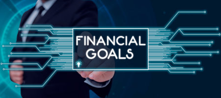 Hand writing sign Financial Goals. Word Written on targets usually driven by specific future financial needs