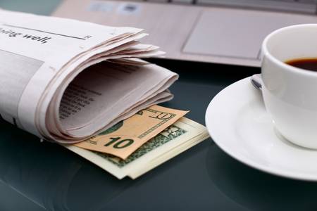 Latest high quality news feed displayed on newspaper, tablet, and mobile phone on desk