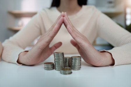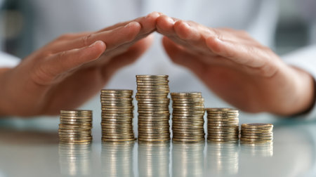 Secure financial growth is represented by hands protecting stacks of coins, symbolizing investment safety and security. image conveys trust and stability in financial management