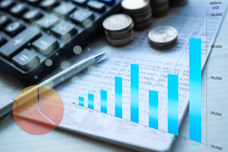 Charts Graphs paper. Financial development, Banking Account, Statistics, Investment Analytic research data economy, Stock exchange Business office company meeting concept.