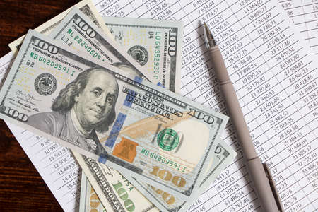 banknotes and pen on a paper of financial report
