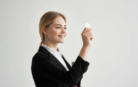 woman in jacket cryptocurrency bitcoin executive finance e-commerce economy