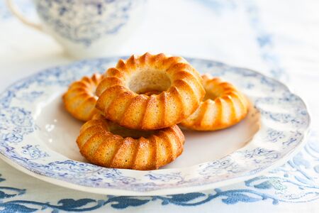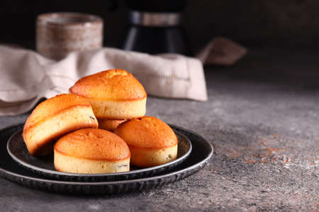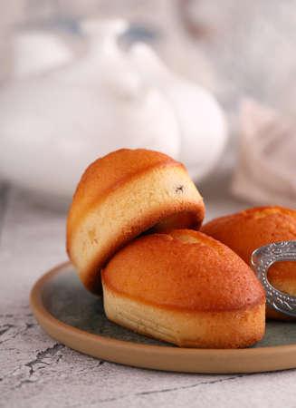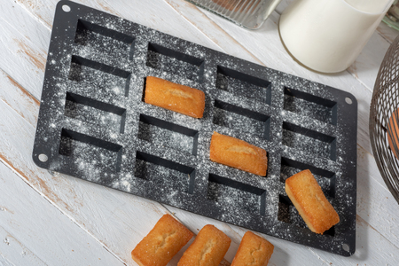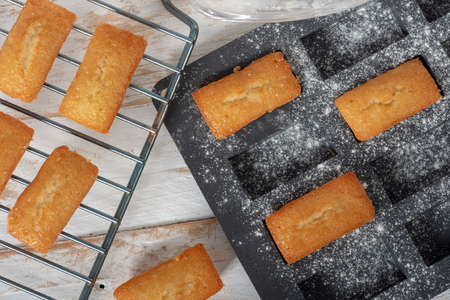 Traditional French pastries in molds - financier cake after baking - beautiful texture and background