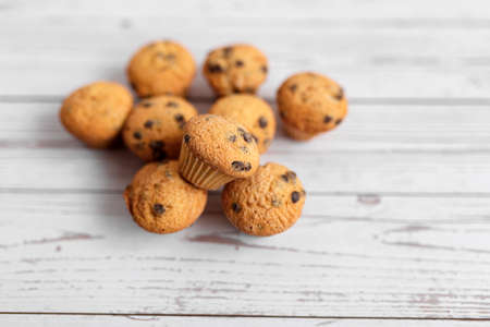 Fresh cupcake on the table baked at home. Delicious Breakfast fo