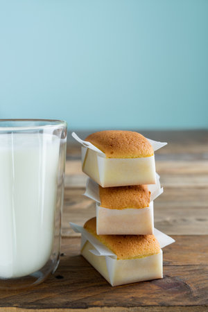 Mini castella cake on white background.
