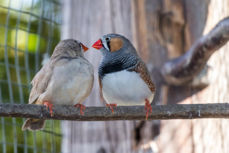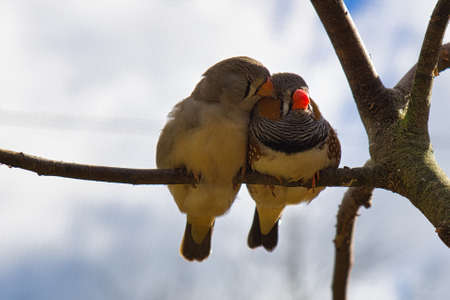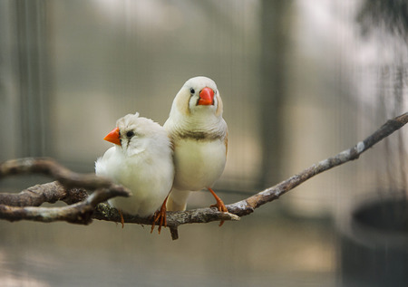 Zebra finch couple (Taeniopygia guttata) sitting on a branch