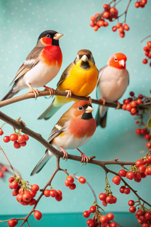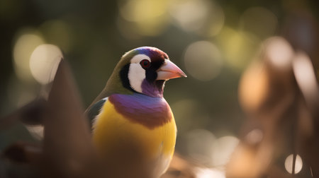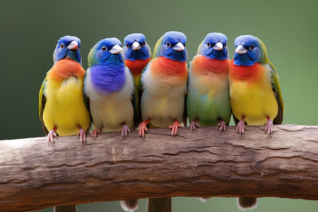 group of vibrant gouldian finches perched together, created with generative ai