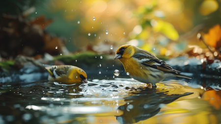 Siskin (Carduelis tristis) on the water