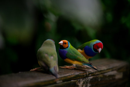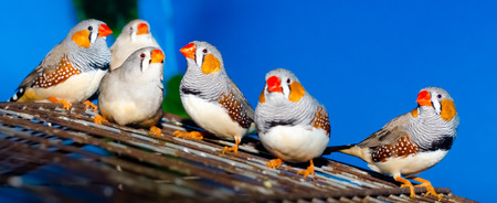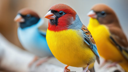 Group of Royal finch birds closeup
