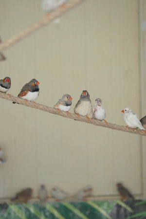 a exotic image of a flock of small birds in the aviary beautiful