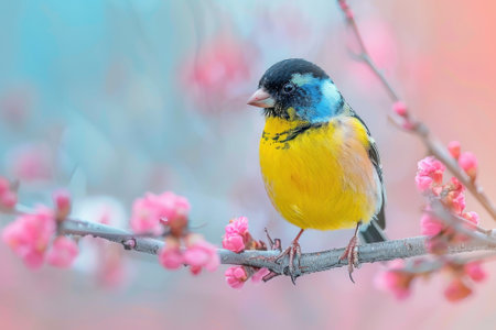 the bunting, a stunning bird species, is beautifully captured in this photo-realistic image, showcasing its vibrant plumage, intricate feather patterns, and striking facial features, highlighting its unique characteristics and natural beauty in a lush, green environment. ai generated