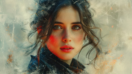 Close up portrait of a young woman featuring double exposure with glitch art elements