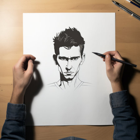 a man creating a portrait with flawless line work and photo-realistic techniques, drawing inspiration from iconic pop culture caricatures, airbrush art, interstellar comic book art, and anime-inspired characters. the artwork showcases unapologetic grit and attention to detail. ai generated