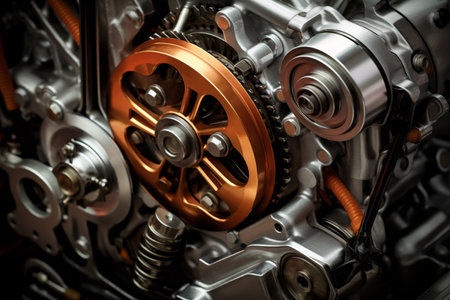 A striking close-up view of a metallic engine component showcasing intricate details and industrial design. Perfect for technical and automotive projects.