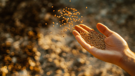 Healthy hand holding ripe seed in golden sunlight on farm generated by artificial intelligence