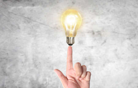 Hand of holding illuminated light bulb, innovation inspiration concept, business idea